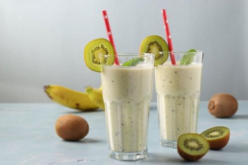 - для приготовления кефирного смузи «Страсть вампира» нарезать кусочками один банан и очищенный от кожуры киви. Поместить в чашу блендера, добавить половину стакана черники и залить кефиром или натуральным йогуртом без добавок — 250 мл. Взбить, и можно наслаждаться превосходным вкусом!