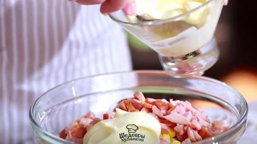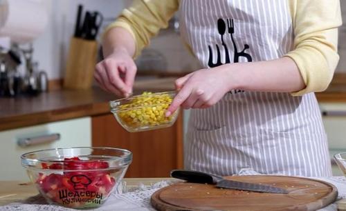 2. остальные овощи нашинковать небольшими кусочками, добавить кукурузу.