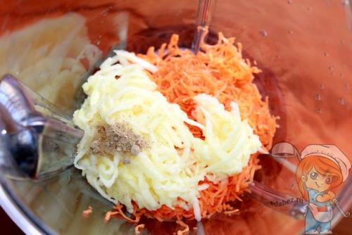 Сочную крепкую морковь очищаем, ополаскиваем и трем на терке.