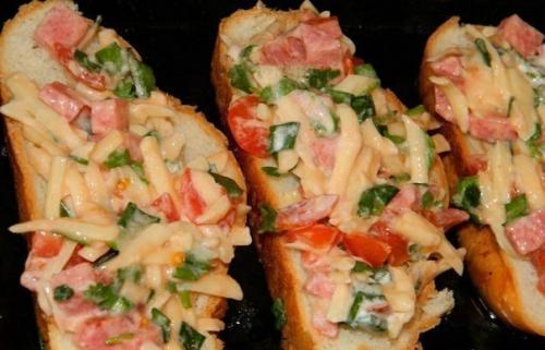 Готовить 5 минут? Ингредиенты: Батон. Колбаса копченая. Сыр. Помидор. Зелень. Лук (можно зеленый). Кетчуп, майонез. Растительное масло. Приготовление: Мы режем зелень, лук зеленый, колбасу. Добавляем порезанные помидоры и натертый сыр. Добавляем майонез и кетчуп. Перемешиваем. Это тот случай, когда бумага для выпечки нам не нужна. Наливаем на противень растительное масло. Выкладываем нарезанный батон. Сверху выкладываем начинку . Выпекаем горячие бутерброды в разогретой духовке при температуре 180 градусов 15 минут. Всё! Наша закуска готова! Присылай свои рецепты в предложенные новости?