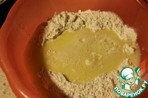 Если тесто суховато и все еще рассыпается, нужно влить в него 1-2 ст. ложки воды. Оно должно получиться упругим и пластичным, собираться в ком.