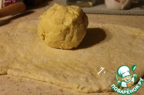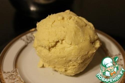 Слепить из маргариново-мучной смеси шар. Месить не надо, просто скрепить массу в целое. И отложить пока в сторону.