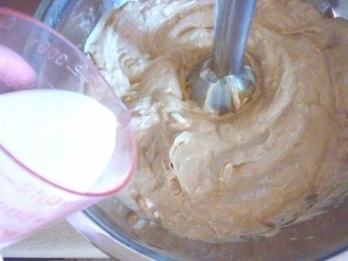 2. добавляем молоко и ещё раз тщательно взбиваем.