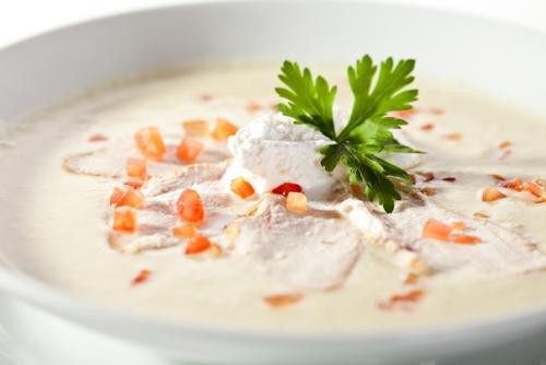 5. перед подачей посыпьте суп зеленью, добавьте гренки.