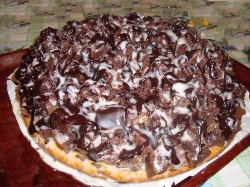 Замешиваем негустое тесто выливаем в круглую форму и выпекаем при 180 гр. До готовности.
