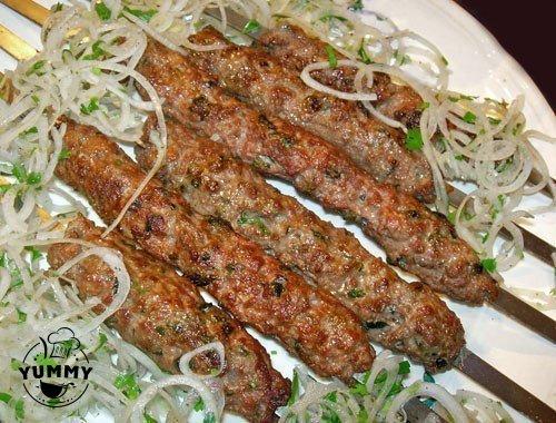 А теперь внимание, повторюсь. В случае если вы добавите в фарш лук и, тем более, уксус или лимонный сок, то вам действительно придется долго и упорно фарш отбивать с большой вероятностью, что он слетит - таки с шампуров. "Физика" отбивания заключается в том, чтобы "вышибить" из фарша лишнюю влагу, то есть, сок того же лука, уксус или лимонный сок. Это мартышкин труд, уверяю вас. Никогда не занимайтесь подобной ерундой, тем более, что на финише люля-кебаб с луком ничем не отличается от люля-кебаба без лука. Просто фарш, состоящий исключительно из рубленого мяса, сала, соли, зелени и специй, помесите хорошенько в миске и через 10 минут он будет вязким и упругим, готовым, так сказать, лечь на шампуры.