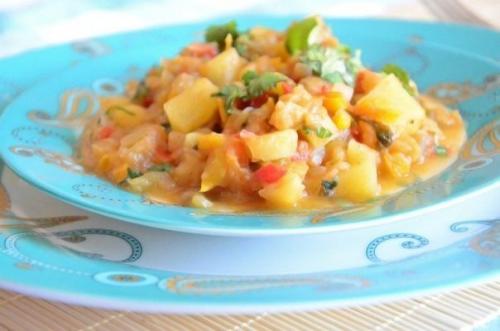 3. через 10 минут положите лавровый лист, нарезанный кубиками сладкий перец, и очищенные от кожицы, нарезанные кубиками помидоры. Тушите 10 минут.