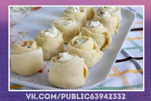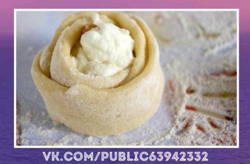 Одну из трёх частей (самую маленькую) оборачиваем вокруг творога и скрепляем.