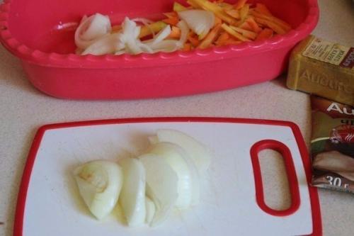 1. порезать морковь соломкой, лук полукольцами.