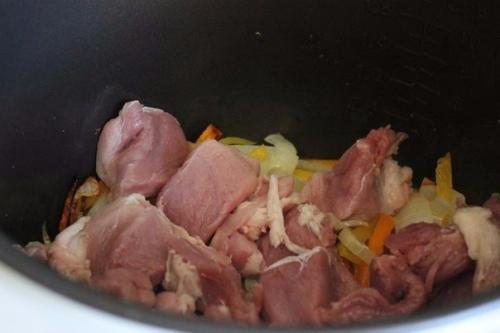 4. добавить свинину, обжаривать в той же программе 15 минут.