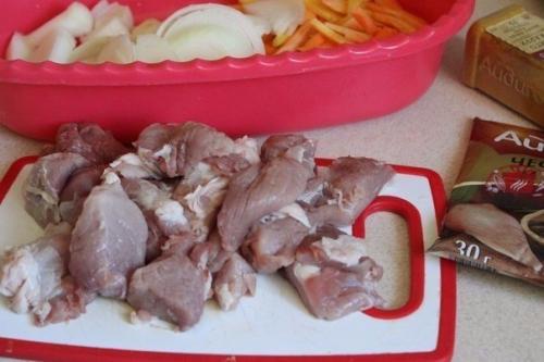 2. свиную филейку порезать небольшими кусочками.