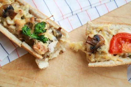 Багет, фаршированный курицей и грибами.
