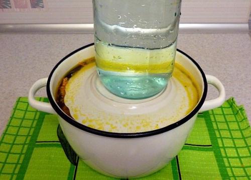 Подготовьте рассол. Для этого разведите соль в воде, пропорция должна быть такой - 3 столовых ложки соли на полтора литра вод. Но рассола сделайте немного больше чем требуется. Готовые баклажаны остудите, и разрежьте каждый, вдоль пополам.
