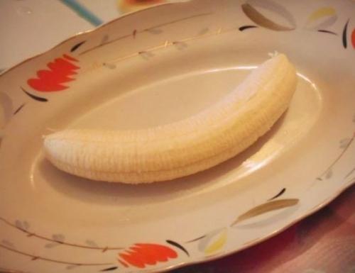 2. очистила банан и выложила его на продольное блюдо.