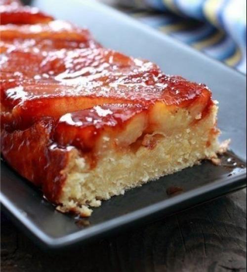 5. ставим в горячую духовку, выпекаем 35 минут при 200 градусах. Карамель будет булькать по краям пирога, это нормально. Готовый пирог вытащить, накрыть блюдом с небольшим бортиком и немедленно перевернуть. Форму аккуратно снять. Приятного аппетита!