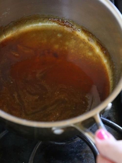 2. за это время как раз успеем приготовить карамель. Лишь в том случае, если у вас есть сковорода (а еще лучше, керамическая форма для татенов), в которой сначала можно приготовить карамель на плите, а потом поставить в духовку, готовьте сразу в ней. Потом просто добавите сверху бананы и тесто и в печь! Я готовую карамель перелила в форму, где потом и запекался мой банановый татен.