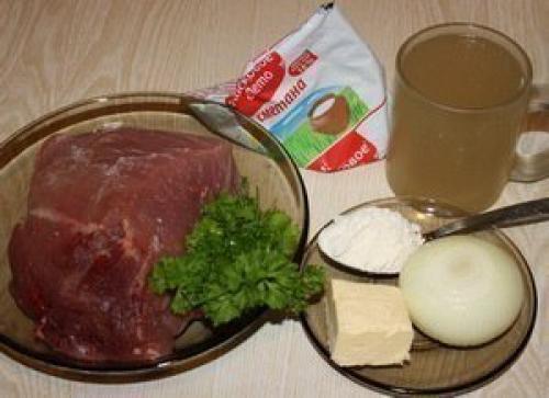 Мясо мы нарезаем поперек волокон ломтиками толщиной 0, 5 см. Слегка отбиваем и нарезаем полосками длиной 5-6 см и шириной 1 см. Обжариваем в два захода на половине сливочного масла. Перекладываем на тарелку и отставляем в сторону.