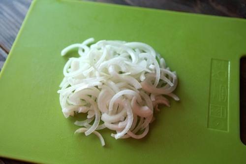 2 лук нарезаем полукольцами.