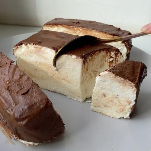 После того, как десерт застыл, я украсила шоколадной глазурью и снова отправила в холодильник.