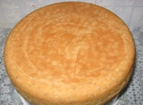 3. каждый корж выпекать в мультиварке 50 минут в режиме "Выпечка". После сигнала мультиварки сразу крышку не открывать, чтобы бисквит не осел. Таким образом выпечь бисквит в мультиварке из трёх коржей.