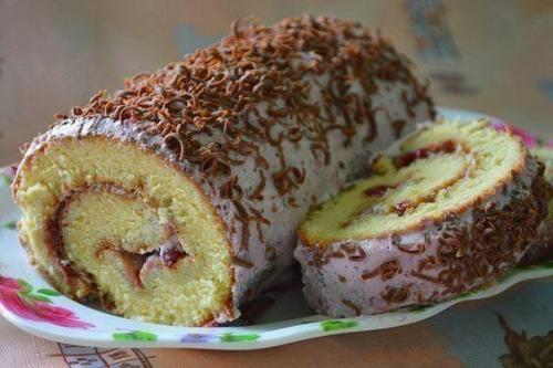 Все взбить в блендере. Аккуратно раскрутить полотенце с рулетом, смазать бисквит кремом и закрутить обратно уже без полотенца. Готовый рулет украсить оставшимся кремом и шоколадом, натертым на мелкой терке. Дать настояться.