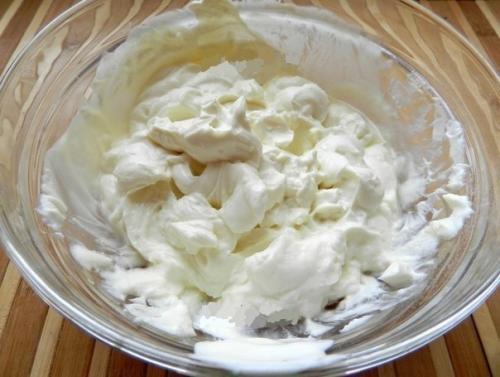 Творог смешать с сахарной пудрой, сметаной и ванильным сахаром в пышную однородную массу.