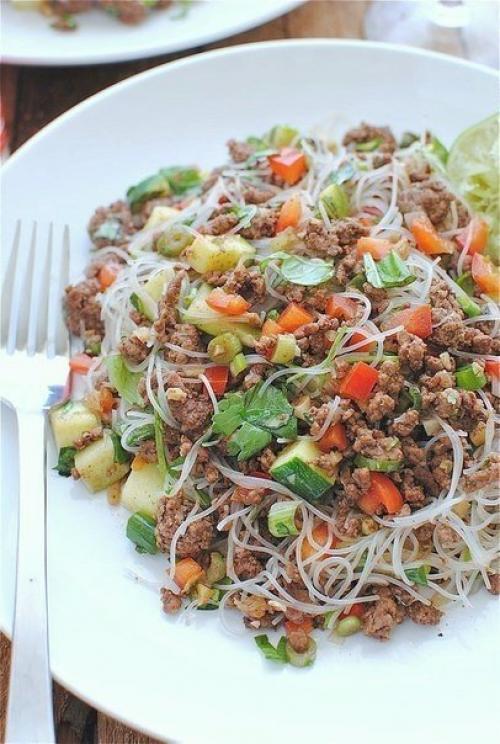 4. в большой миске или салатнице смешайте приготовленную вермишель, фарш с овощами, нарезанный перец, базилик, петрушка и лук. Выжмите сок лайма. Перемешайте. Подавайте с дольками лайма.?