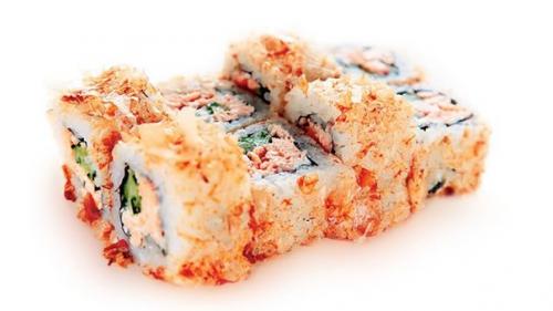 6. посыпьте ролл стружкой тунца "Bonito". С помощью Макису "Приклейте" стружку к роллу. Не нужно сильно давить, чтобы ролл остался "Пушистым".