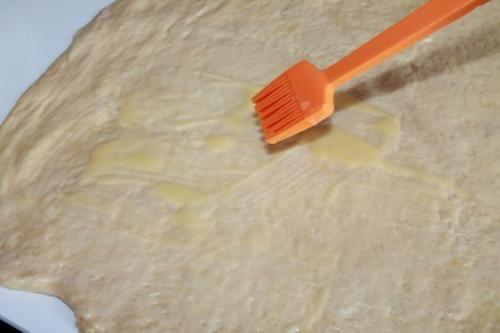 Смазываем всю поверхность теста растопленным сливочным маслом.