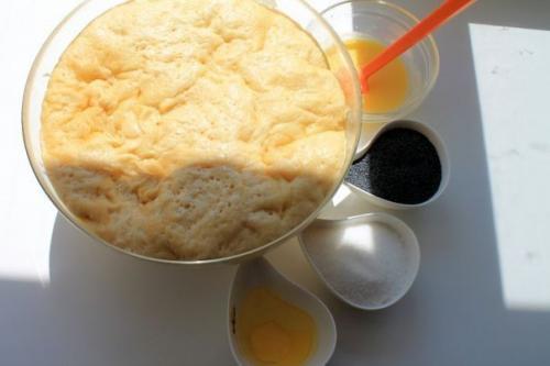 Для булочек с маком нам понадобится минимум ингредиентов. Тесто лучше приготовить заранее, у меня сдобное опарное дрожжевое тесто. Рецепт у каждой хозяйки свой, поэтому я не делаю акцент в рецепте на его приготовление.