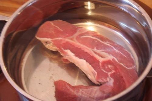 2. за 30 минут до окончания варки добавляем лавровый лист (1 шт) и пару горошин перца. По готовности мясо вытаскиваем, чуть охлаждаем и нарезаем небольшими кусочками.