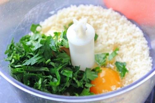 6. в чаше блендера смешать хлебные крошки, рубленую петрушку, яйцо, размягченное сливочное масло, немного соли и перца.