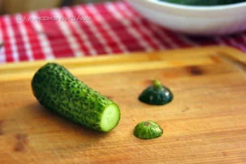 1. огурчики помыть. Отрезать кончики с двух сторон.