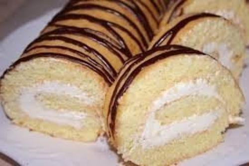 Достать и перевернуть розовой стороной на влажную ткань. Быстро смазать джемом и свернуть, при помощи ткани, дать немного остыть. Ткань снять. Рулет пудрой посыпать. Главное, что получается всегда и быстро пока гости руки моют, он уже в духовке. Правда, я не пробовала другие начинки, кроме джема, возможно можно попробовать варёную сгущёнку.