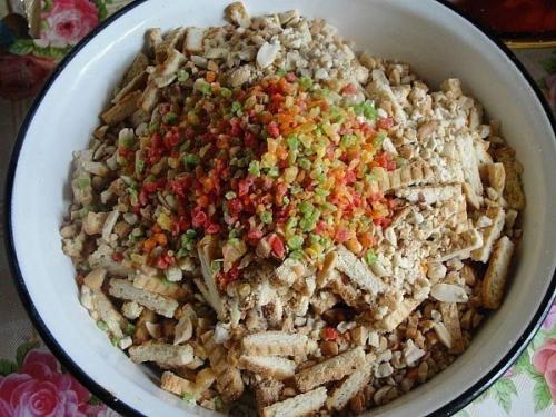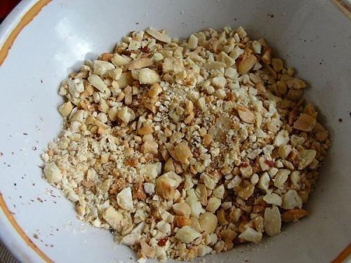 4. смешиваем печенье с орехами. Внимание! Только в том случае, если нашли цукаты - пару ложек и все старательно перемешивайте.