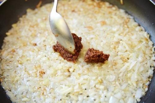 9. добавить протертые на терке свежие томаты. 10. Переложить в сковороду куриные бедра, добавить немного бульона.