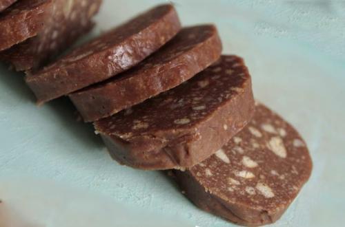 5. скатать три колбаски и завернуть в пищевую пленку. Отправить на 6 часов в холодильник. Приятного аппетита!