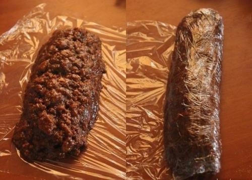 Приготовление: 1. печенье раскрошить так, чтобы осталось немного цельных кусочков. 2. какао перемешать с сахаром. 3. масло растопить в ковшике с молоком, какао и сахаром. Держать на огне до полного растворения сахара, но не кипятить. 4. смешать печенье с жидкой смесью (поэтапно) до образования густой липкой массы. 5. скатать три колбаски и завернуть в пищевую пленку. Отправить на 6 часов в холодильник. Приятного аппетита!