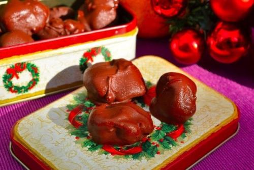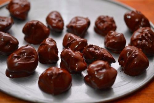 6. аккуратно достаньте конфету с помощью двух вилок или зубочисток и положите на тарелку, смазанную заранее сливочным маслом. Уберите их в холодильник и подождите, пока застынет шоколад.