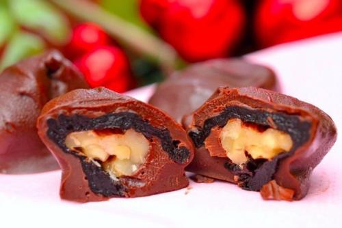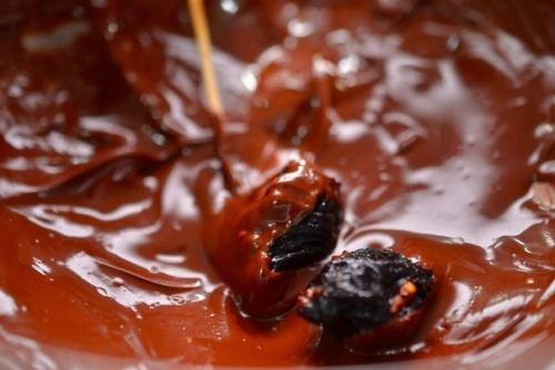 3. пока шоколад тает, займитесь черносливом. В каждую ягоду на место косточки орех подходящего размера вставьте.