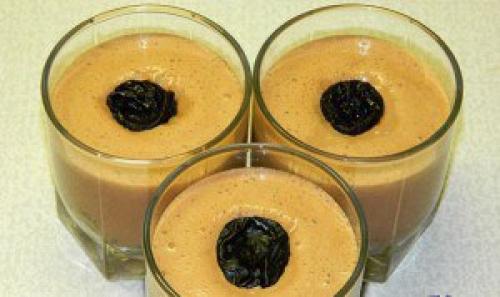 Шаг 7. разлить массу по стаканчикам и в каждый стаканчик разложить по 1 штучке чернослива.