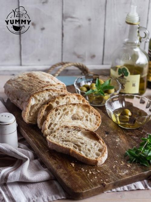 13. вылить кипяток в раскалённую форму на дне духовки. Пересадить обе чиабатты, больше не переворачивая вверх дном, в духовку на раскалённый камень, уменьшить температуру до 220? С. выпекать 10-15 минут с паром, затем убрать форму с оставшимся кипятком из духовки и продолжать выпекать чиабатту ещё 15-20 минут до равномерного зарумянивания.