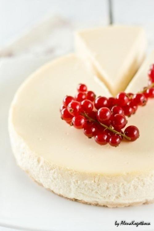 5. форму поставить в глубокий противень, залить в него кипящую воду так, чтобы уровень воды доходил примерно до середины формы. Выпекать 70-75 минут. Проверить готовность чизкейка довольно легко: если чуть потрясти форму, у готового торта слегка содрогается середина.