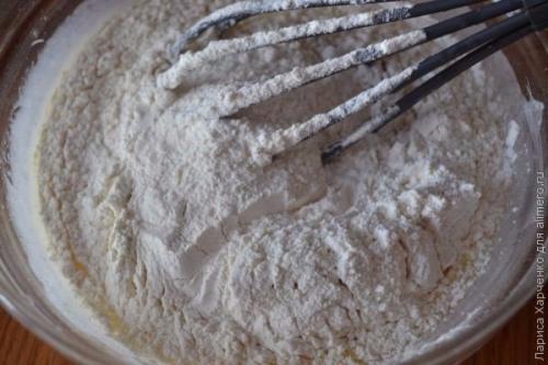 5. теперь просто вымешиваем тесто, добавляя муку и разрыхлитель.