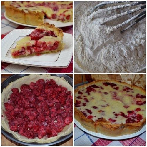 1. перед тем, как заняться тестом, мы достаем малину из морозильной камеры - за этот промежуток времени она не успеет полностью разморозиться и потечь, но в то же время с ней можно будет работать.
