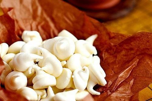 4. горячую массу поместим в кондитерский мешок и выдавим кнопки на бумагу для выпечки.