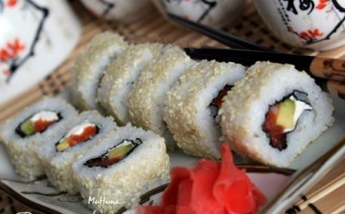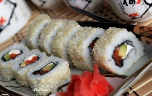 Ролл рисом наружу - урамаки готов. Приятного аппетита!