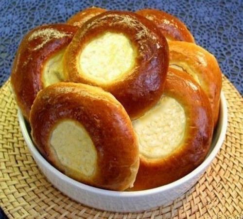 Затем продавить середину каждого шарика теста почти до основания. В получившиеся углубления выложить творожную начинку. Смазать все домашние ватрушки с творогом смесью яйца с молоком и оставить еще на 10 минут. Затем поставить в разогретую до 190 градусов духовку и выпекать до золотистого цвета, примерно 25 минут. Готовые творожные ватрушки переложить с противня на решетку и остудить. Домашние ватрушки с творогом, приготовленные по этому рецепту, получились очень вкусными, пышными и ароматными! Приятного аппетита, радуйте своих близких!