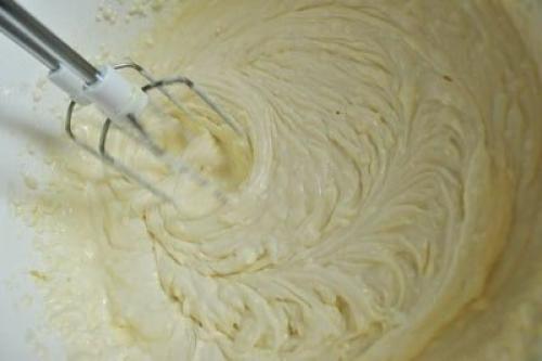 4. в миске соединить творог, плавленый сыр, яйца, 4 столовые ложки сахара, 1 чайную ложку ванильного сахара, цедру лимона. Смешать миксером до однородной массы - сначала на низкой скорости, постепенно ее увеличивая.