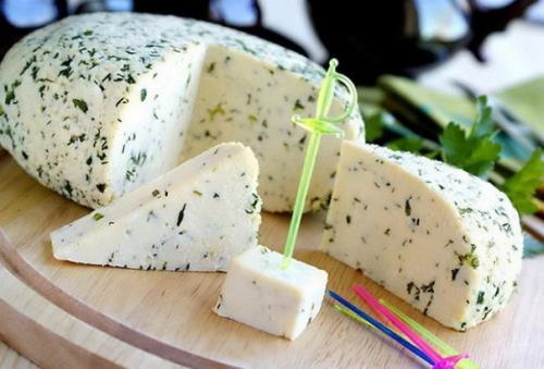 Затем откинуть на сито или дуршлаг, выстланный марлей и дать стечь всей жидкости. Пока стекает жидкость перчик нарезать очень мелко, укроп также порубить. В сырную массу добавить соль, добавки и хорошо перемешать. Как жидкость стечет так, что масса будет густая, сыр выложить плотно в любую форму, а сверху придавить грузом и оставить на 8-10 часов. Затем сыр вытащить, чуть натереть солью и убрать в холодильник для охлаждения на 1-2 часа. Лучше как достали из формы, завернуть в пленку или в пакет. (Чтобы не обветривался. Затем режем и мы кушаем. Соль добавляйте по вкусу, лучше попробовать смесь, я соленый не люблю. Без холодильника он не тает и не плавится, структура как у адыгейского, даже чуть плотнее. А как вкусно с теплым хлебушком!